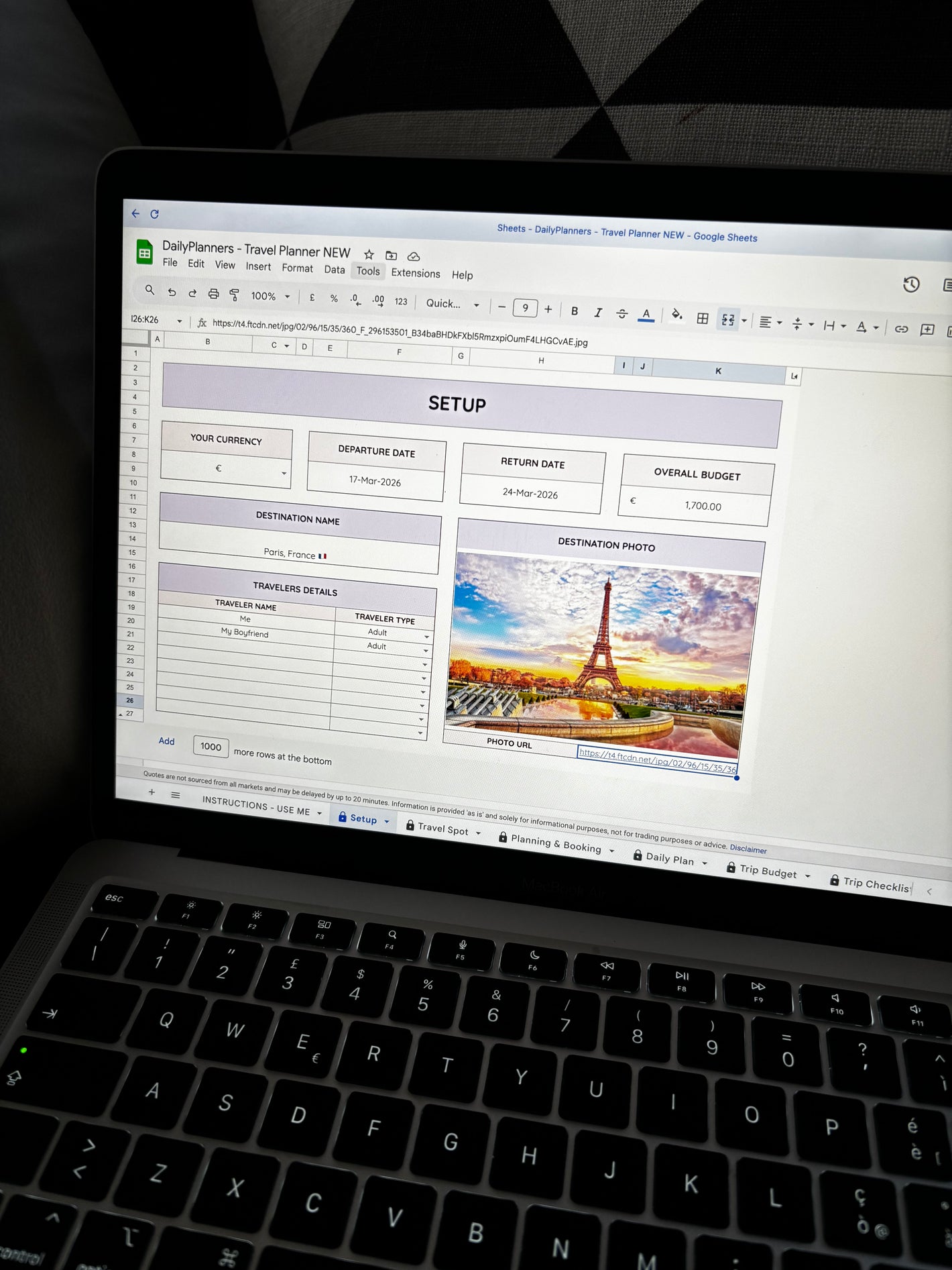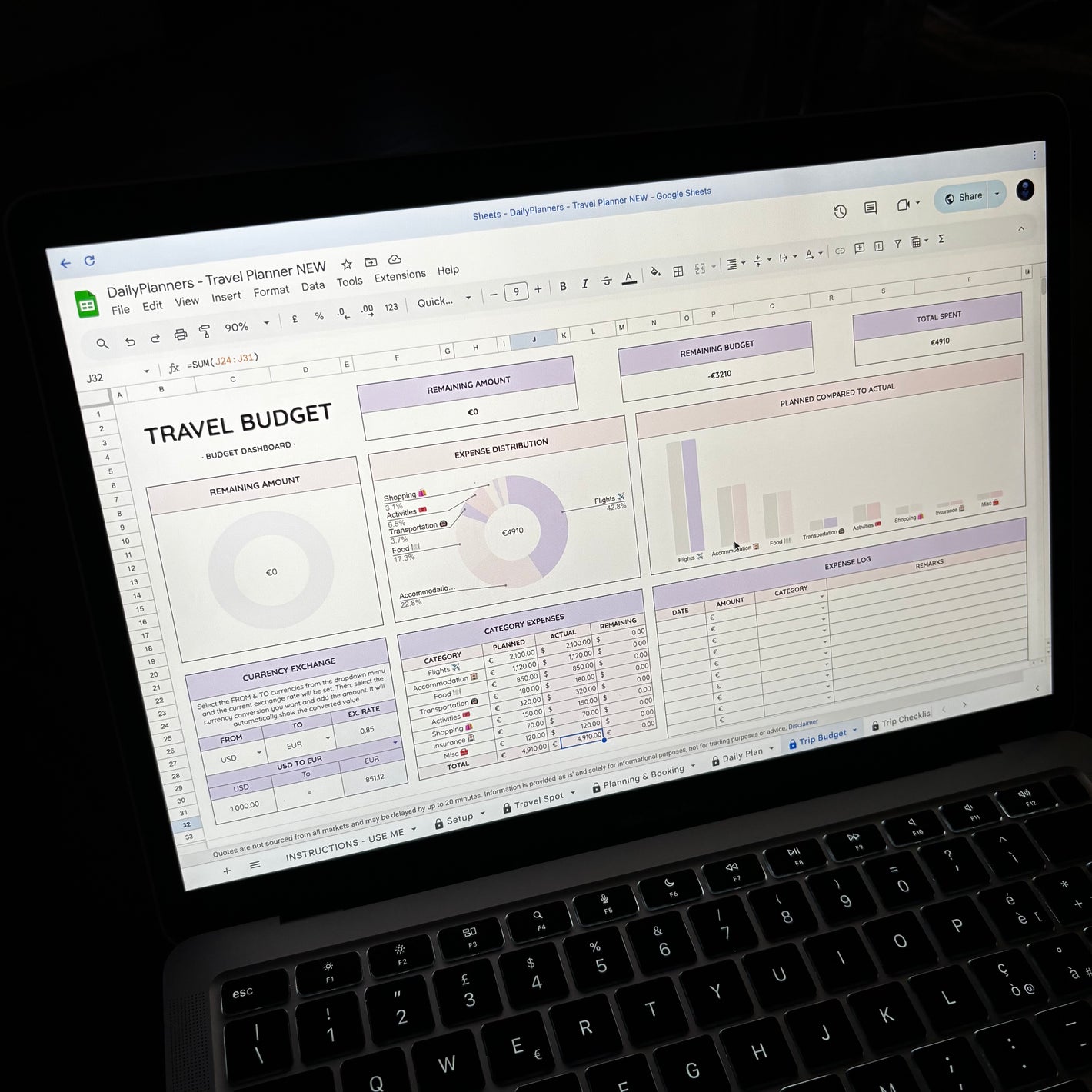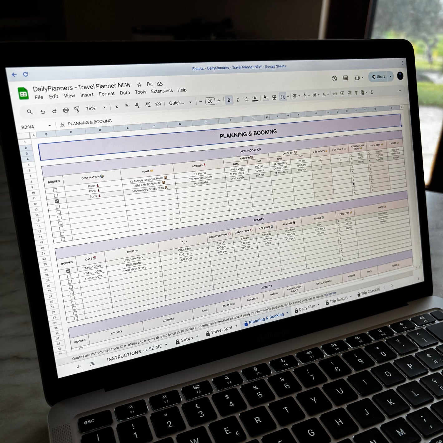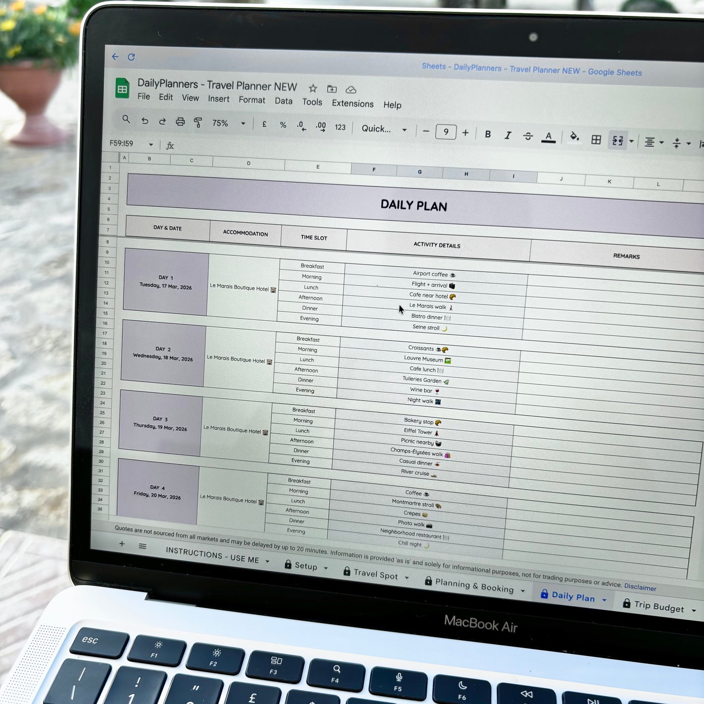 Planned a 12-day Europe trip only with this file: cities, trains, hotels, budget and packing. Instead of 100 screenshots, we just checked this planner and everything was there.